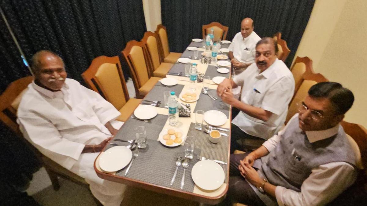 Union Minister Mansukh Mandaviya and BJP in-charge for Puducherry Nirmal Kumar Surana met Chief Minister and AINRC founder N. Rangasamy at a private hotel on Friday. Apart from the three leaders, Minister for Public Works and AINRC leader K. Lakshminarayanan was present at the meeting, which lasted for a few minutes.