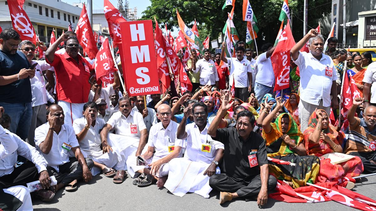 A joint forum of 11 trade unions staged protests at six locations, namely BSNL office near Collectorate, Periyanaickenpalayam, Mettupalayam, Sulur, Pollachi, and Valparai in the district, drawing participation from over 3,000 workers.
