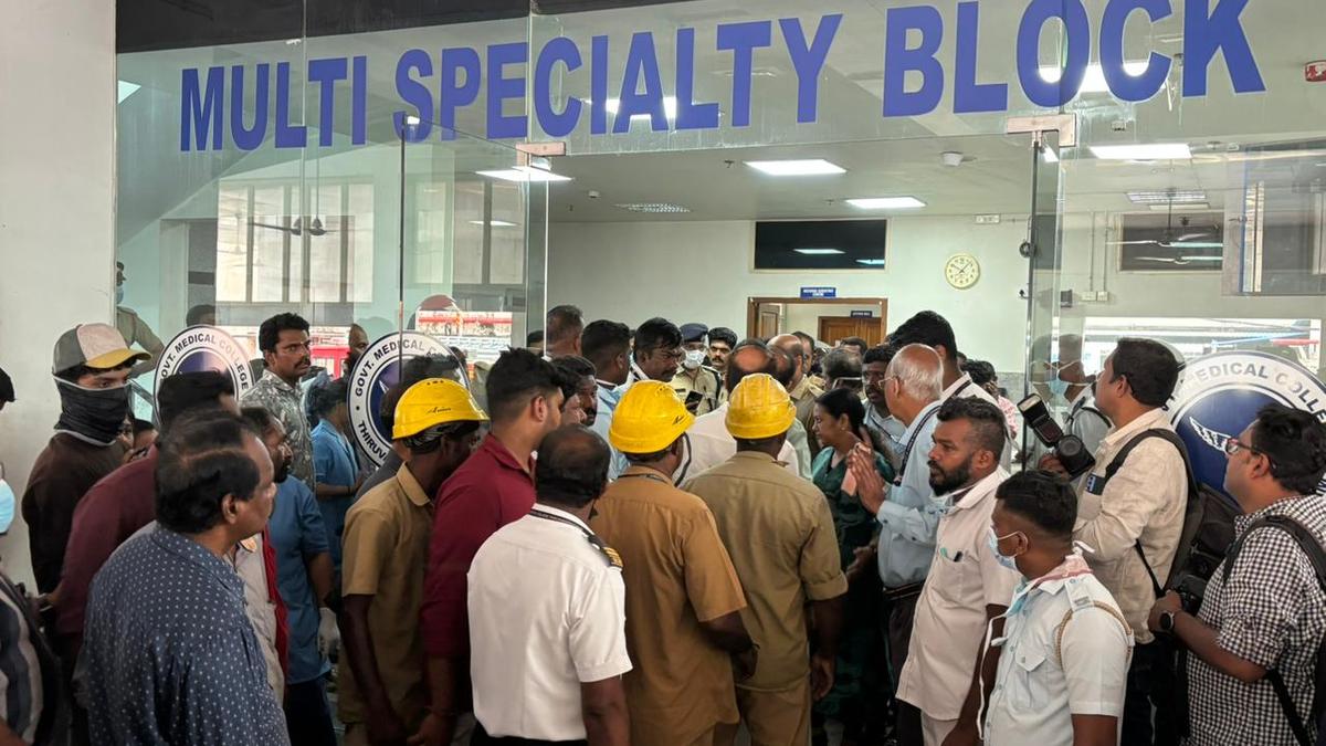 Evacuation of patients and cooling operations under way as fire broke out at Multi Speciality Block of Thiruvananthapuram Medical college on March 17, 2026.