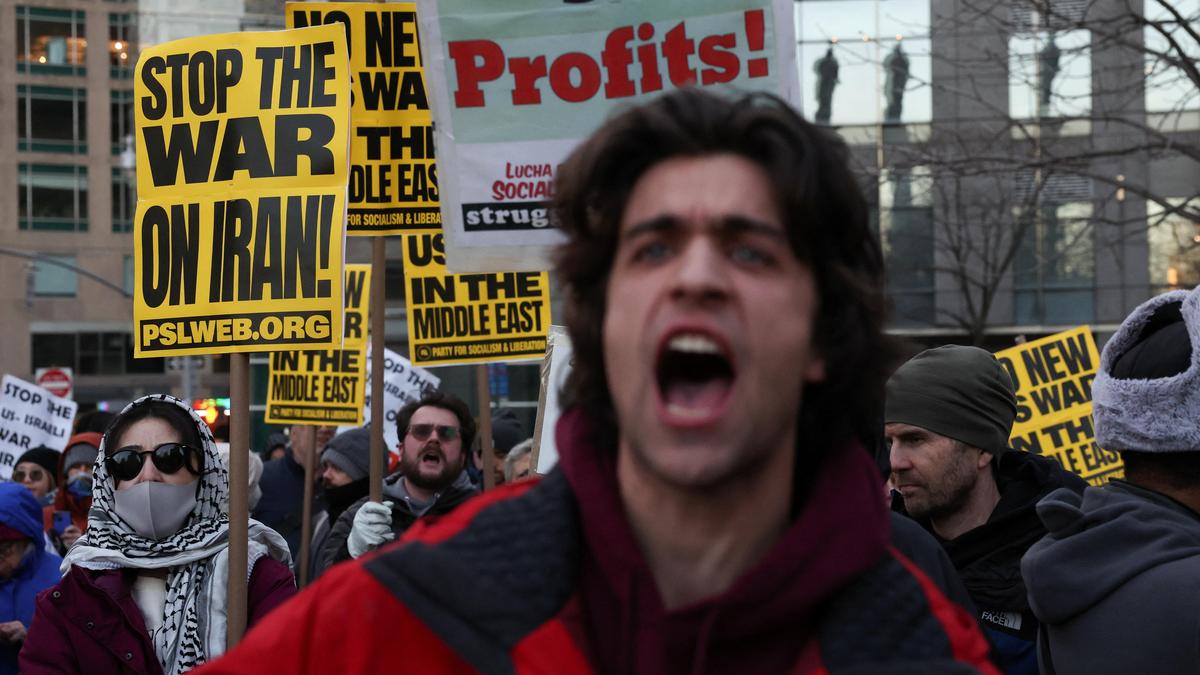 Demonstrators protest against the U.S.-Israel conflict with Iran, after the U.S. and Israel launched strikes on Iran, in New York City, U.S., on March 2, 2026.