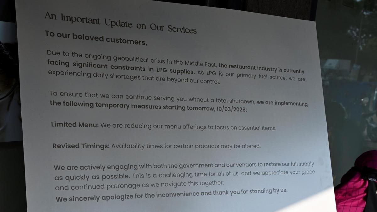 Following a communication from oil marketing companies to hotels in Coimbatore on Monday (March 9, 2026) that the supply of LPG cylinders will be affected because of the ongoing US – Iran conflict, hotels in the district have decided to cut down service timings and menus.