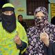 Voters wait in a queue at a polling station during the final phase of the Bihar Assembly elections, in Jehanabad