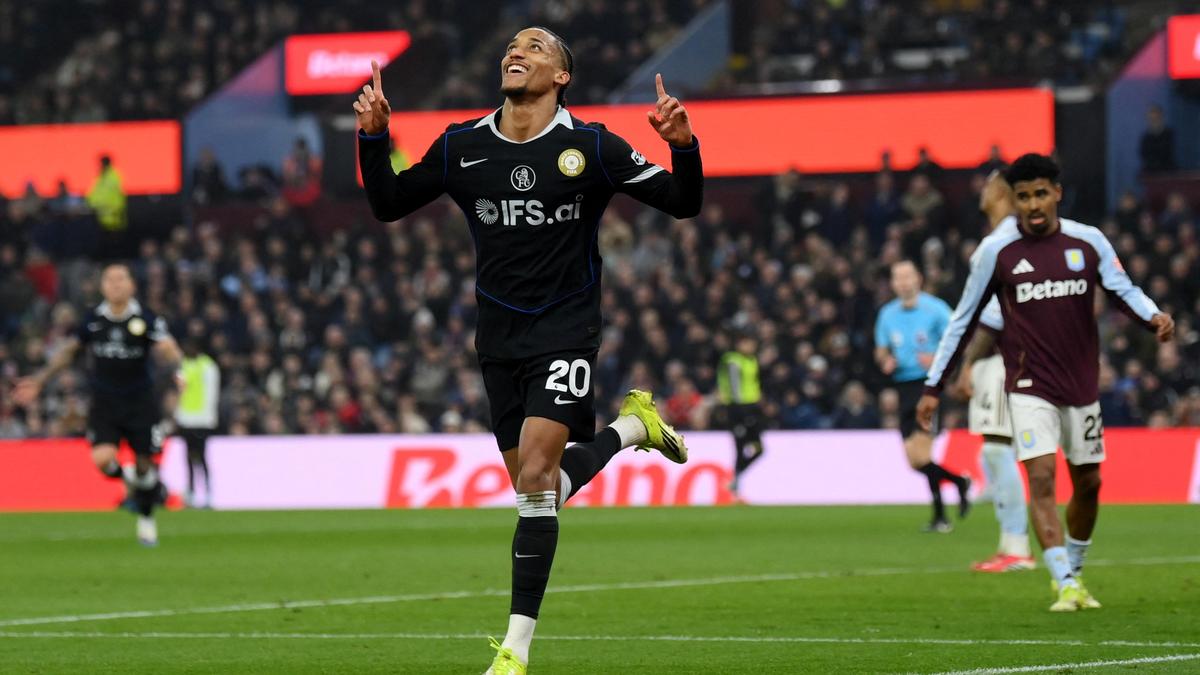 Chelsea’s Joao Pedro celebrates scoring a goal to complete his hat-trick against Aston Villa, on March 4, 2026