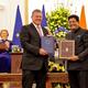 European Council President Antonio Costa (left) and Vietnamese President Luong Cuong shake hands in Hanoi, Vietnam, on January 29, 2026.